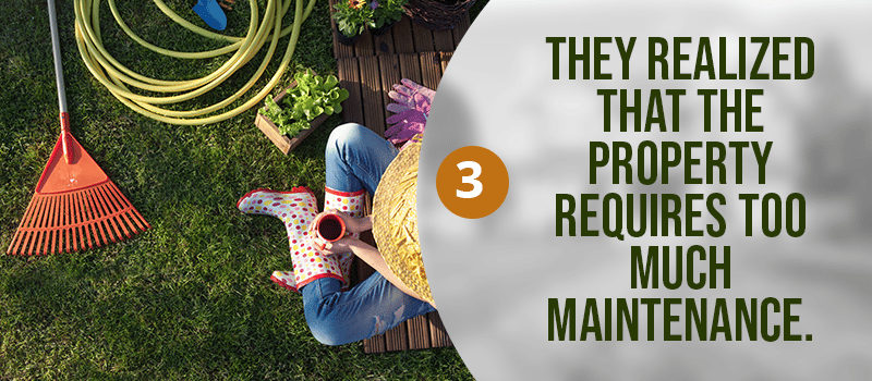 Owning a home with a huge yard is a dream for many. There's great joy waking up in the morning and having a cup of coffee in your impeccably manicured garden. But not until the reality sinks in: tending to a house with a big yard requires so much work. And if buyers aren’t prepared to spend their weekends getting rid of overgrown weeds and removing yard waste, living in a home with too much maintenance can contribute to disappointment in the choice of a home.