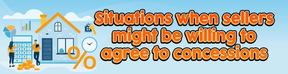Asking for seller concessions is a part of the negotiation process involved in a real estate transaction. But it's important to know when sellers may be more likely to offer concessions, and it can be in any of these situations: