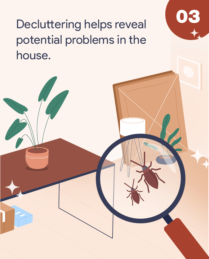 Decluttering can also help you identify potential problems in your home that can be deal breakers for many potential buyers. Where there is clutter, likely, pests are also around, such as ants, spiders, and rodents. By decluttering ahead of time, you can easily spot these pests and get rid of them.