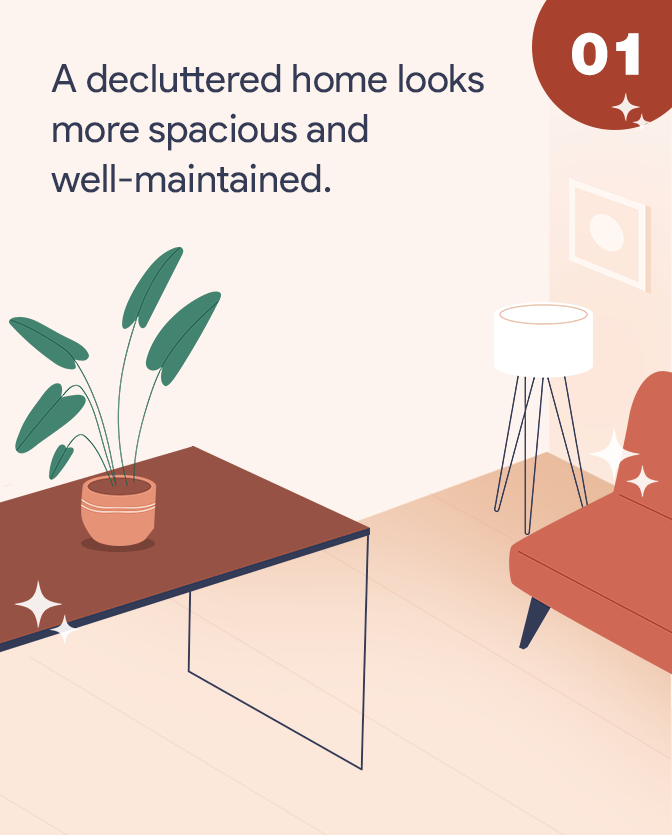 The greatest benefit of decluttering, even if you're still deciding whether or not to list your home for sale, is that your home instantly looks more spacious and appealing. It all boils down to perception. No matter how big your home’s actual footage is, excessive furniture, decor, and clutter can make your place cramped and untidy. All of these elements also make the home unattractive to potential buyers.